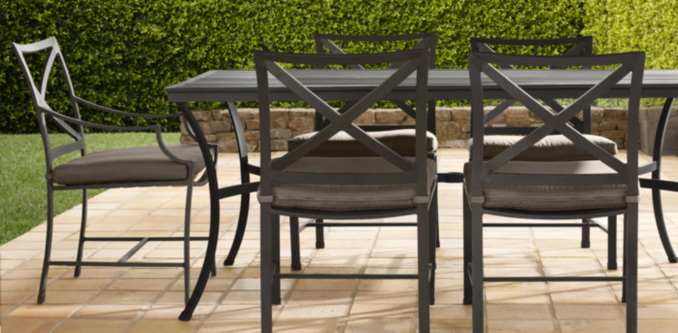 We finally decided on the Carmel Collection from Restoration Hardware. Made up of rustproof metal, I felt that this would be easy to clean and maintain. I like the elegant looking "X" on the back of the furniture and the arm detailing.