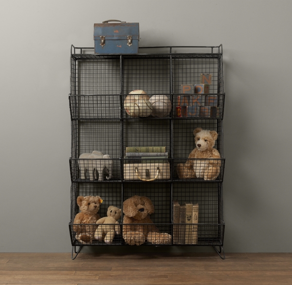 I've been back and forth on what type of shelving/storage I want for my nursery...I am bored by all the typical wood shelving and bins, so I thought I would hunt for something a little more industrial and transitional. These are along the lines of what I have in mind....just imagine them stacked and lined with books and sweet baby items/toys.